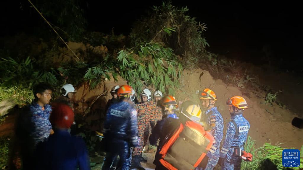 這張馬來西亞雪蘭莪州消防救援部門12月16日公布的照片顯示,救援人員在云頂高原附近的滑坡現場搜救。