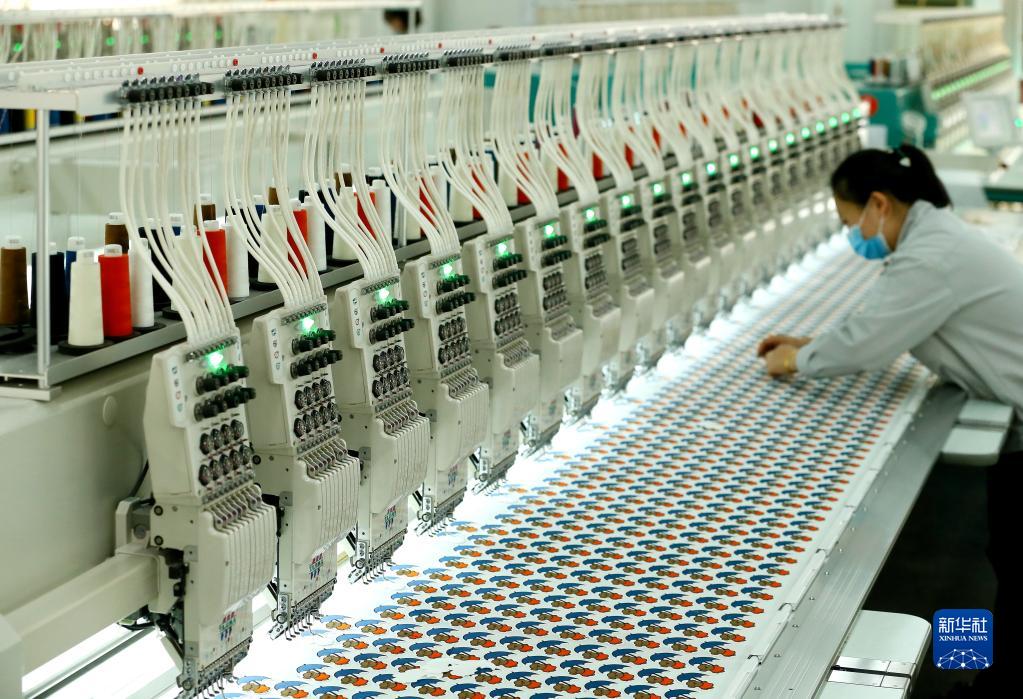 12月16日,青島市即墨區一家服裝繡花企業的工人在生產出口到海外市場的產品。