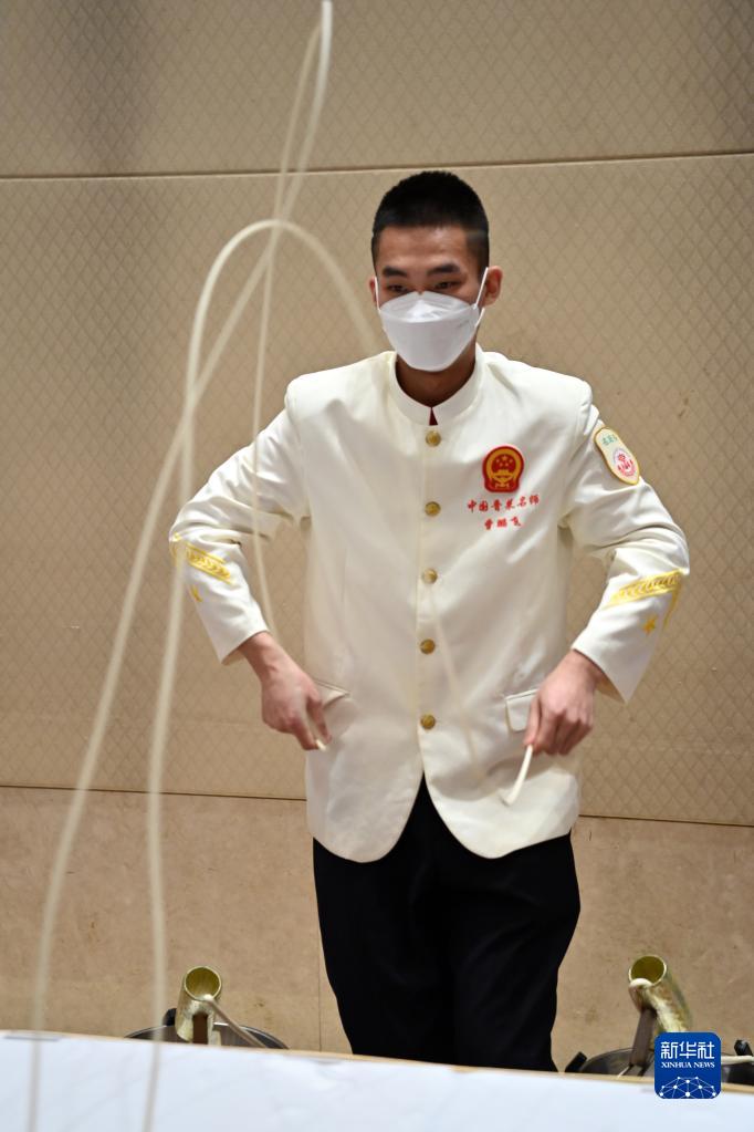 12月16日,廚師在2022中國非遺面食大會現場表演面食制作技藝。