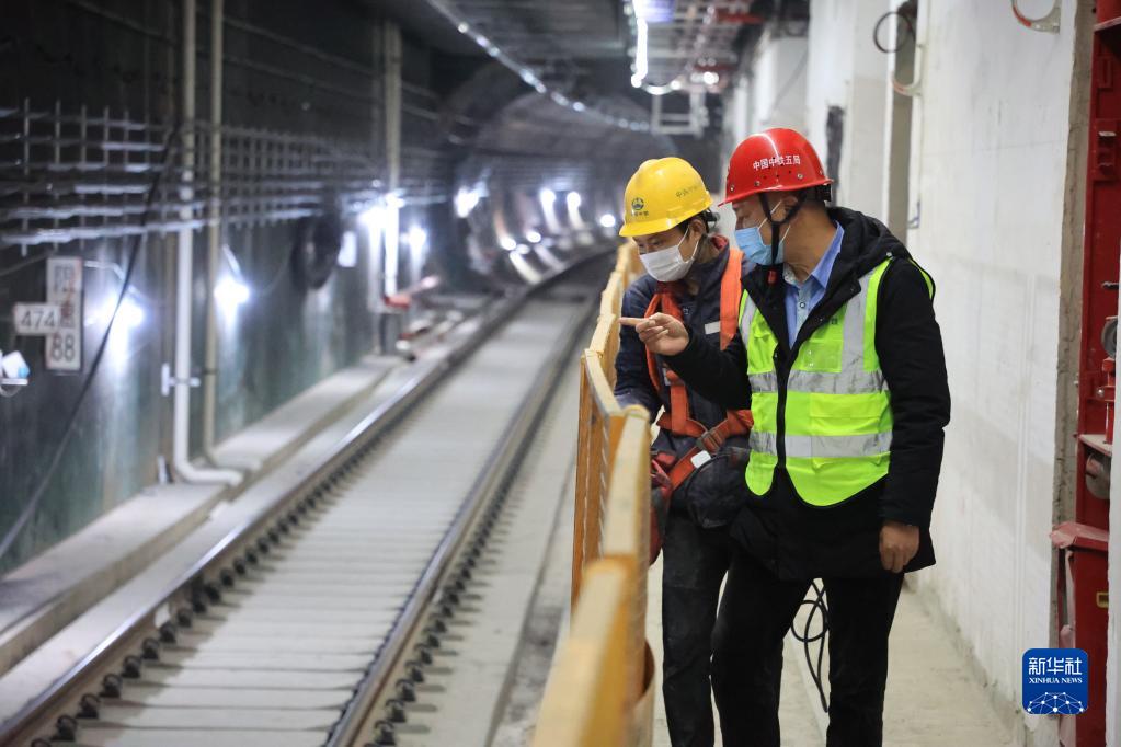 12月16日,中鐵五局建設者在貴陽軌道交通三號線東風鎮(zhèn)站內巡視檢查。