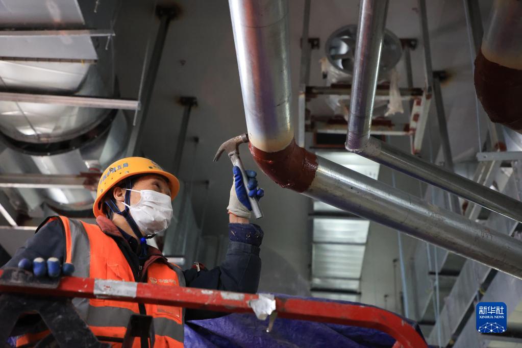 12月16日,中鐵五局建設者正在貴陽軌道交通三號線東風鎮站內檢查管道設備。