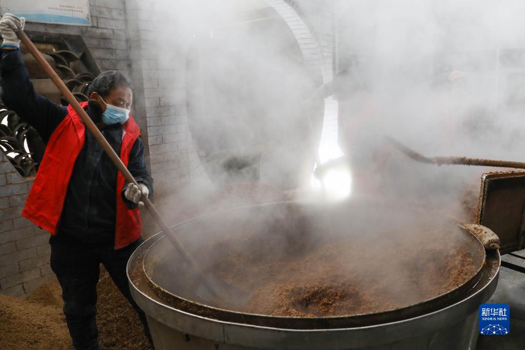 寒冬時(shí)節(jié),河南省寶豐縣釀酒專(zhuān)業(yè)村石橋鎮(zhèn)邢莊村進(jìn)入釀酒繁忙季。村里10余家釀酒作坊按照制曲、選料、蒸煮、攤晾、封窖等傳統(tǒng)古法工藝釀酒,鄉(xiāng)村里彌漫著濃郁的酒香。