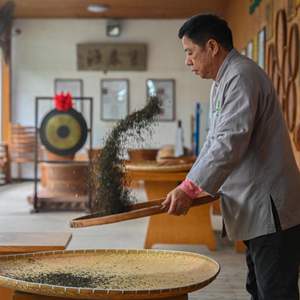 福州茉莉花茶由綠茶和茉莉花進行拼和、窨制而成,它的制作技藝被稱為“福州茉莉花茶窨制工藝”,是國家級非物質文化遺產,包含平、抖、蹚、拜、烘、窨、提七道工序。一般來說,窨的過程按照1斤茶和3斤花配比,一層茶葉一層花層層堆放、靜置,然后重復窨次,最多可窨九次。最終茉莉花把花香奉獻給茶葉,花朵消失不見。