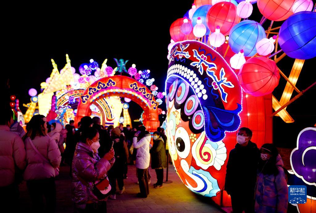 人們在西安城墻新春燈會賞燈游玩(1月20日攝)。