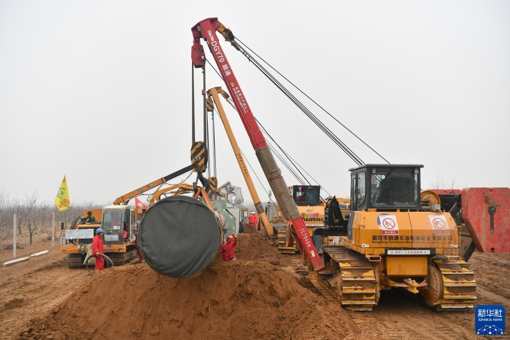 2月16日,施工人員在位于陜西省咸陽(yáng)市禮泉縣的西氣東輸三線工程陜西段管道鋪設(shè)施工現(xiàn)場(chǎng)作業(yè)。
