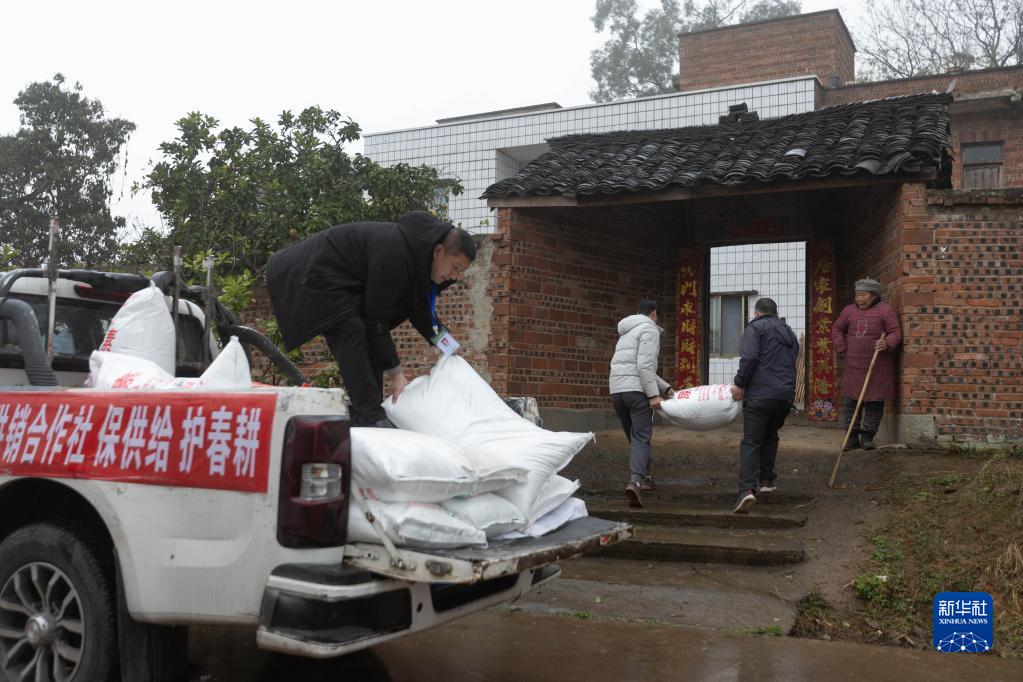 2月22日,四川省瀘縣供銷合作社農(nóng)資服務(wù)員把化肥和種子送到云錦鎮(zhèn)稻子村秦治華家中。