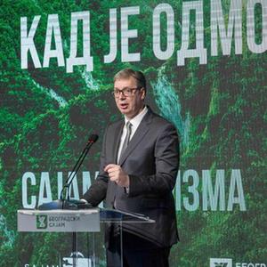 2月22日,在塞爾維亞首都貝爾格萊德,塞爾維亞總統(tǒng)武契奇在第44屆貝爾格萊德國(guó)際旅游博覽會(huì)開(kāi)幕式上致辭。