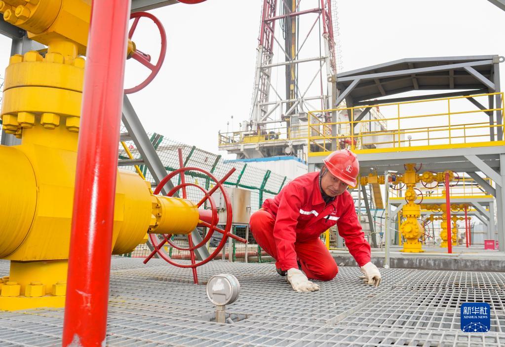 2月21日,中國石化江漢油田涪陵頁巖氣公司的技術人員在涪陵頁巖氣田焦頁12號平臺內對投產的頁巖氣井進行觀測巡護。