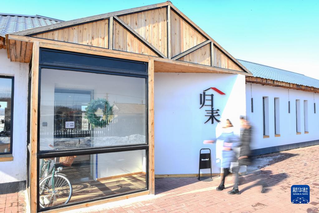 2月23日,游客走進吉林市永吉縣北大湖鎮五里河村一家民宿。