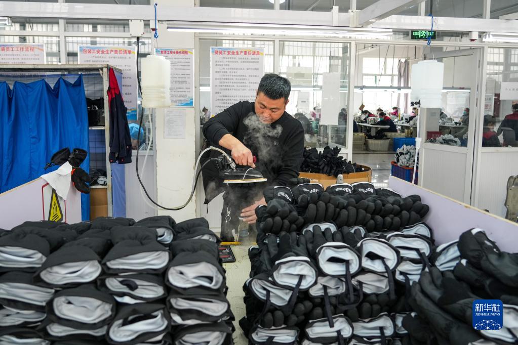 2月23日,在嘉祥縣的一家手套生產(chǎn)企業(yè),員工在車間內(nèi)加工生產(chǎn)手套。