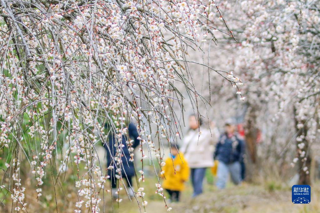 2月20日,游人在湖南省龍山縣石羔街道永興社區的梅園里游玩。