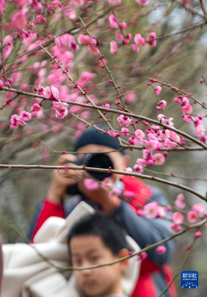 2月18日,游客在蘇州市吳中區光福鎮香雪海景區賞花拍照。