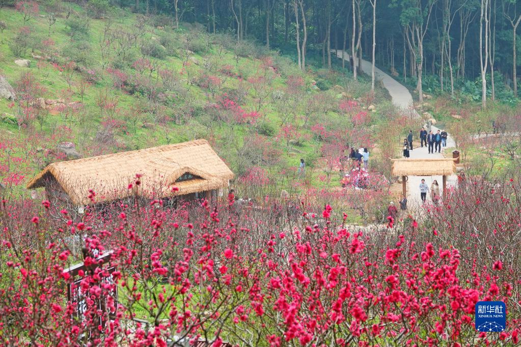 2月22日,游人在廣西南寧市青秀山景區桃花塢景點賞花游覽。