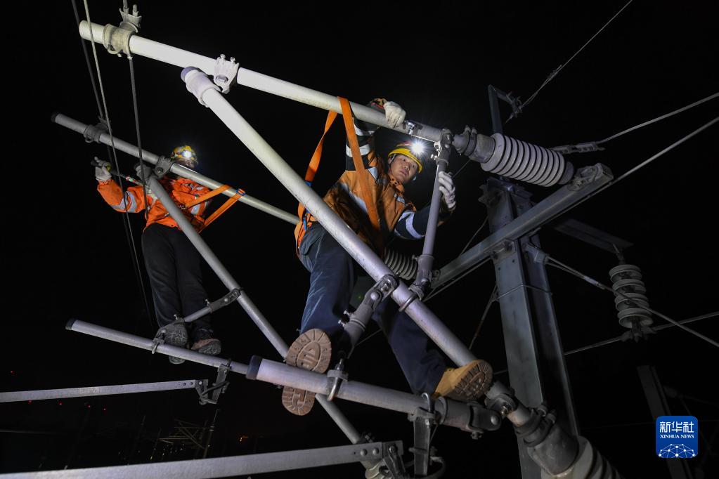 每日0至4時,中國鐵路上海局集團有限公司上海高鐵基礎設施段的綜合維修工們都要在滬寧城際高鐵沿線對接觸網設備進行全面“體檢”,守護高鐵運行安全。綜合維修工的日常工作包括接觸網絕緣子清掃、吊弦更換、隔離開關檢修等。