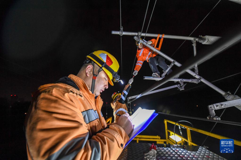 每日0至4時,中國鐵路上海局集團有限公司上海高鐵基礎(chǔ)設(shè)施段的綜合維修工們都要在滬寧城際高鐵沿線對接觸網(wǎng)設(shè)備進行全面“體檢”,守護高鐵運行安全。綜合維修工的日常工作包括接觸網(wǎng)絕緣子清掃、吊弦更換、隔離開關(guān)檢修等。