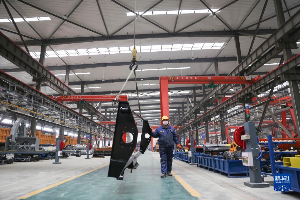 2月22日,工人在位于阜新市的徐工(遼寧)機械有限公司生產車間內工作。