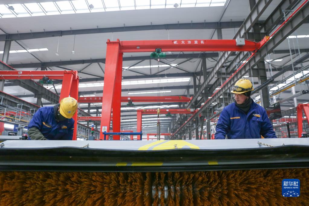 2月22日,工人在位于阜新市的徐工(遼寧)機械有限公司生產(chǎn)車間內工作。