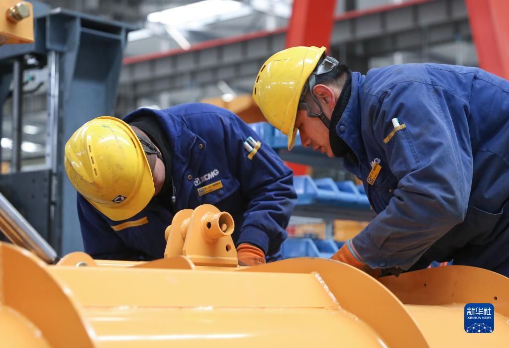 2月22日,工人在位于阜新市的徐工(遼寧)機械有限公司生產車間內工作。