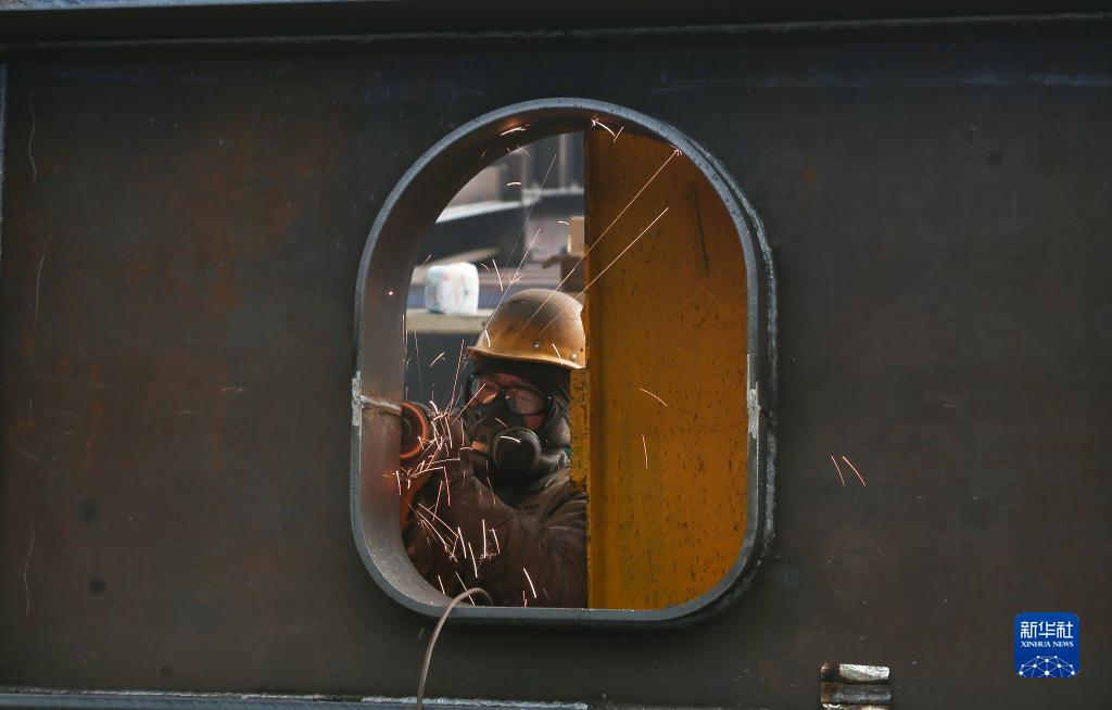 2月23日,工人在阜新市彰武縣華洲重工股份有限公司生產車間內工作。