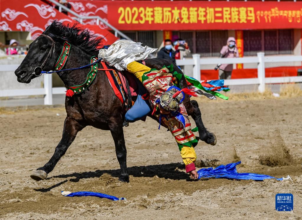 每年藏歷新年初三,在拉薩賽馬場舉辦馬術表演已成為當地慶祝新年的傳統,深受廣大群眾喜愛。騎手們英姿颯爽,為觀眾們帶來騎馬拾哈達、騎馬射箭等精彩表演。