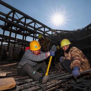工人在長春市城市軌道交通6號(hào)線03標(biāo)段三工區(qū)華慶路站施工現(xiàn)場作業(yè)(2月23日攝)。