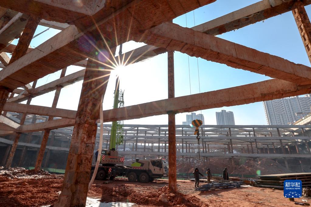 工人在長春市城市軌道交通6號線03標(biāo)段三工區(qū)華慶路站施工現(xiàn)場作業(yè)(2月23日攝)。