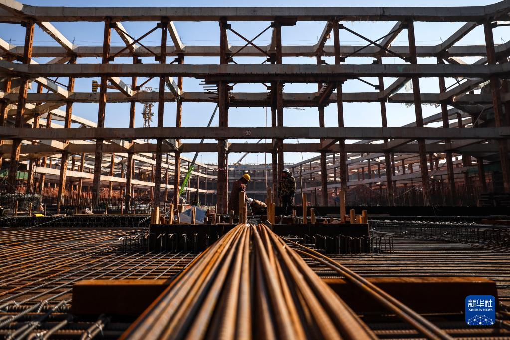 工人在長春市城市軌道交通6號線03標段三工區華慶路站施工現場作業(2月23日攝)。