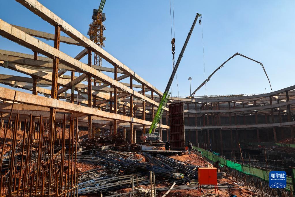 工人在長春市城市軌道交通6號線03標段三工區華慶路站施工現場作業(2月23日攝)。