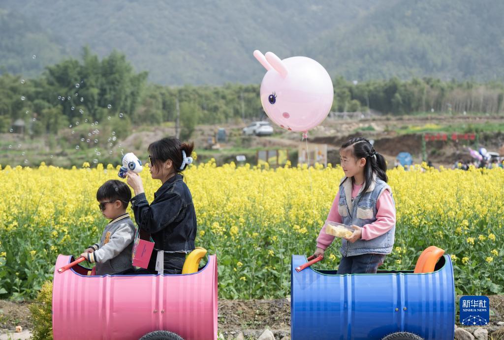 當日,2023中國臨安郎家共富稻田油菜花節在浙江省杭州市臨安區青山湖街道郎家村“共富稻田”開幕,吸引各地游客前來感受春季田野的韻味。