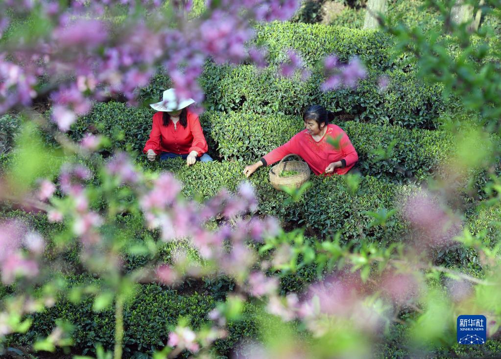 4月1日,茶農(nóng)在秭歸縣茅坪鎮(zhèn)松樹坳村茶園采摘“明前茶”。