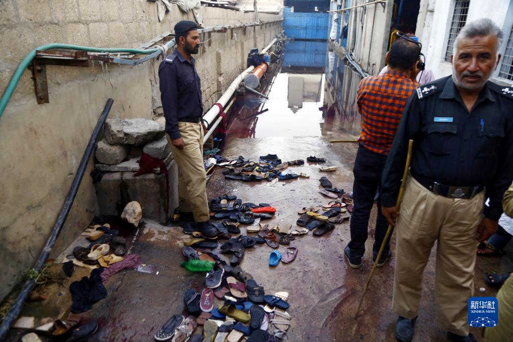 3月31日,在巴基斯坦卡拉奇,工作人員在踩踏事故現場工作。