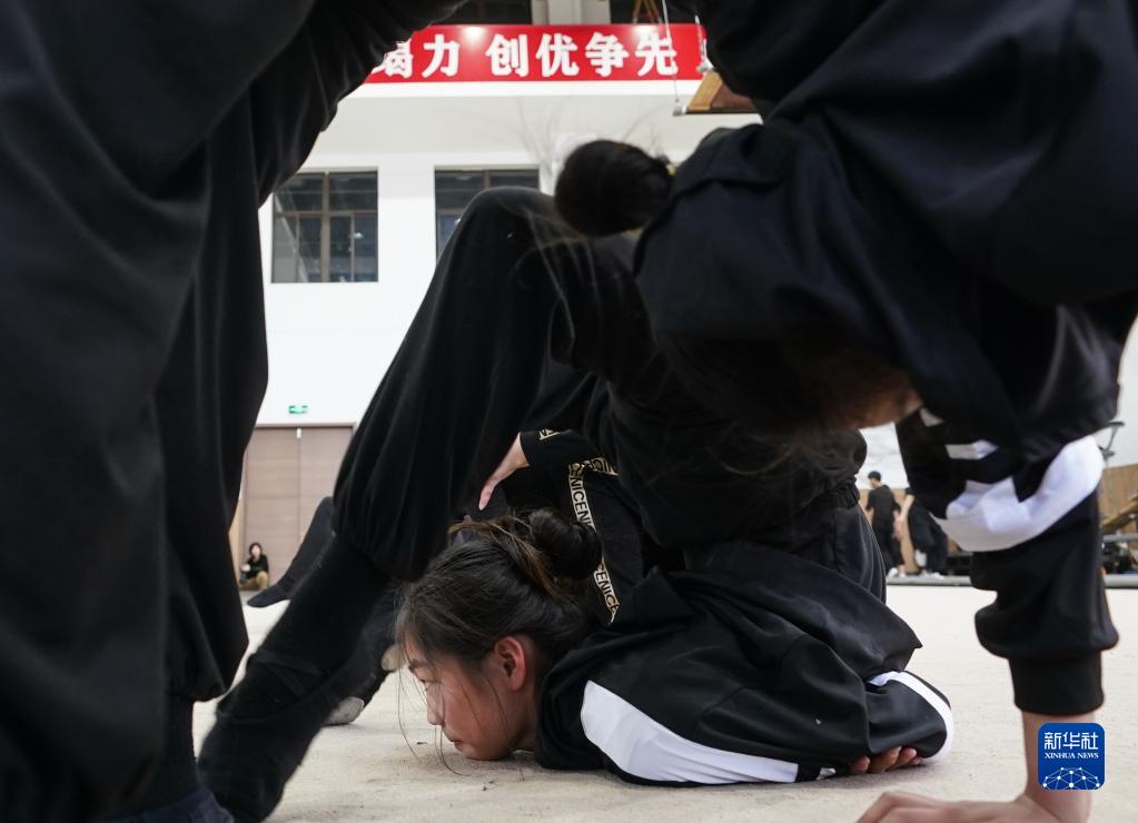 3月31日,演員在位于江蘇省鹽城市建湖縣的江蘇省雜技團(tuán)訓(xùn)練。