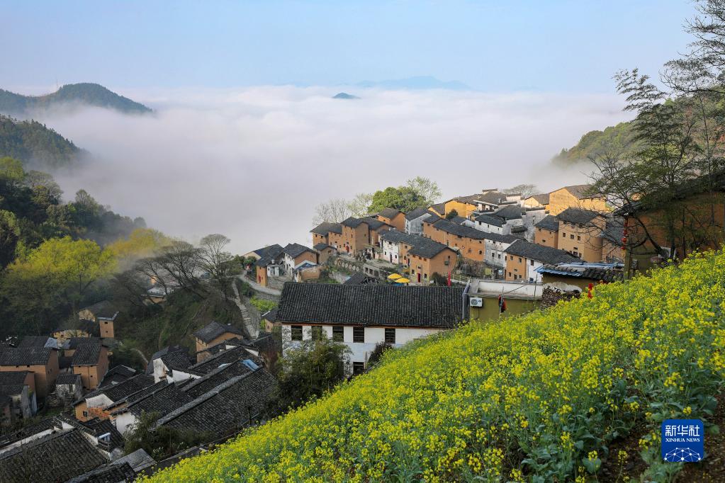 雨后初霽,安徽省黃山市歙縣深渡鎮陽產村出現壯觀云海,徽派土樓掩映其間,美如畫卷。