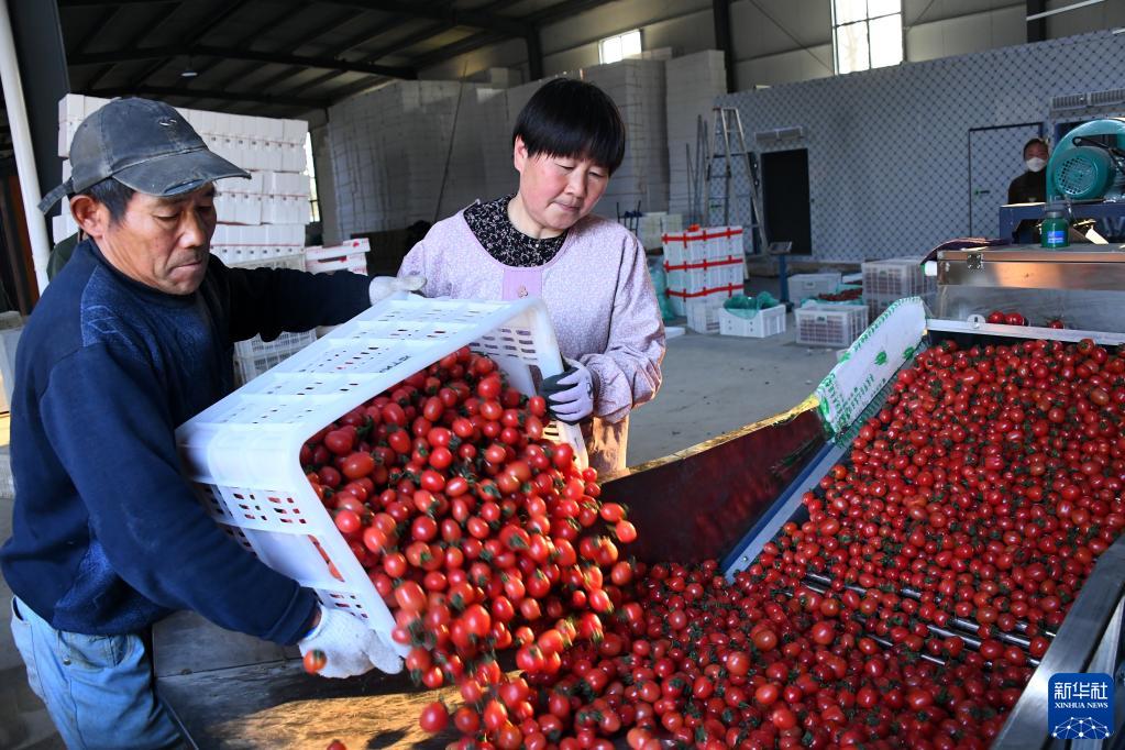 4月1日,在山東省棗莊市臺(tái)兒莊區(qū)馬蘭屯鎮(zhèn)按揭農(nóng)業(yè)基地,菜農(nóng)在分選包裝西紅柿。