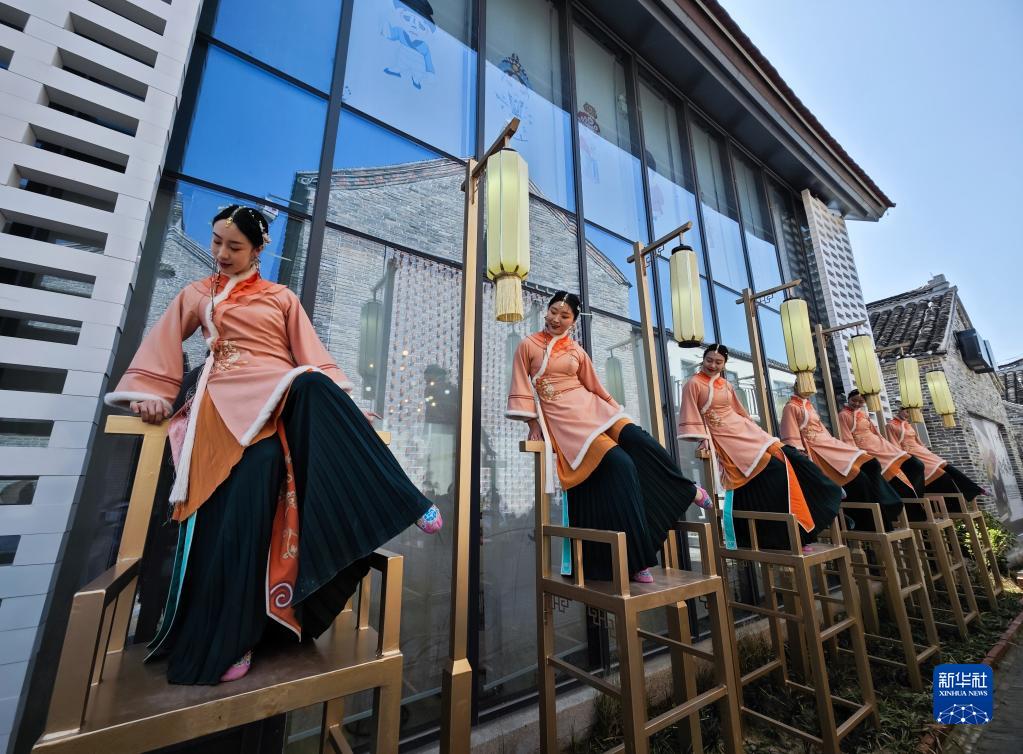 4月1日,演員在位于江蘇省鹽城市建湖縣的淮劇小鎮(zhèn)表演淮劇。