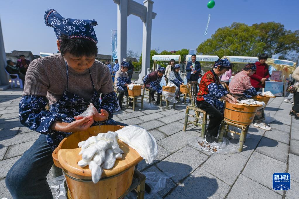 4月2日拍攝的蠶花節(jié)上的傳統(tǒng)繅絲技藝展示。
