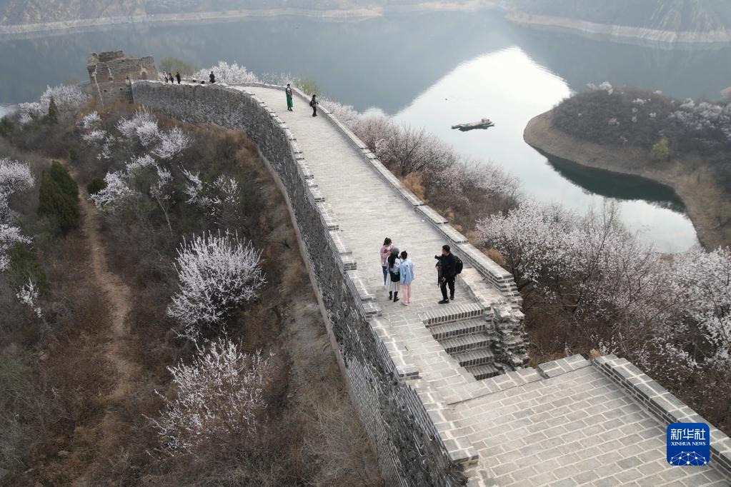 春暖花開時節(jié),位于河北省寬城滿族自治縣的喜峰口水下長城兩側(cè)山花開放,綻放的花朵與古長城相映成景,吸引游人前往游覽。