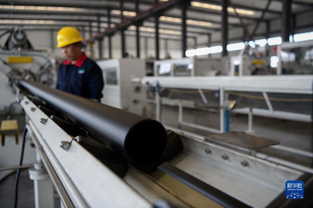 4月2日,在承德縣高新技術(shù)產(chǎn)業(yè)開(kāi)發(fā)區(qū)一家環(huán)保管材生產(chǎn)企業(yè),工人在生產(chǎn)車間忙碌。