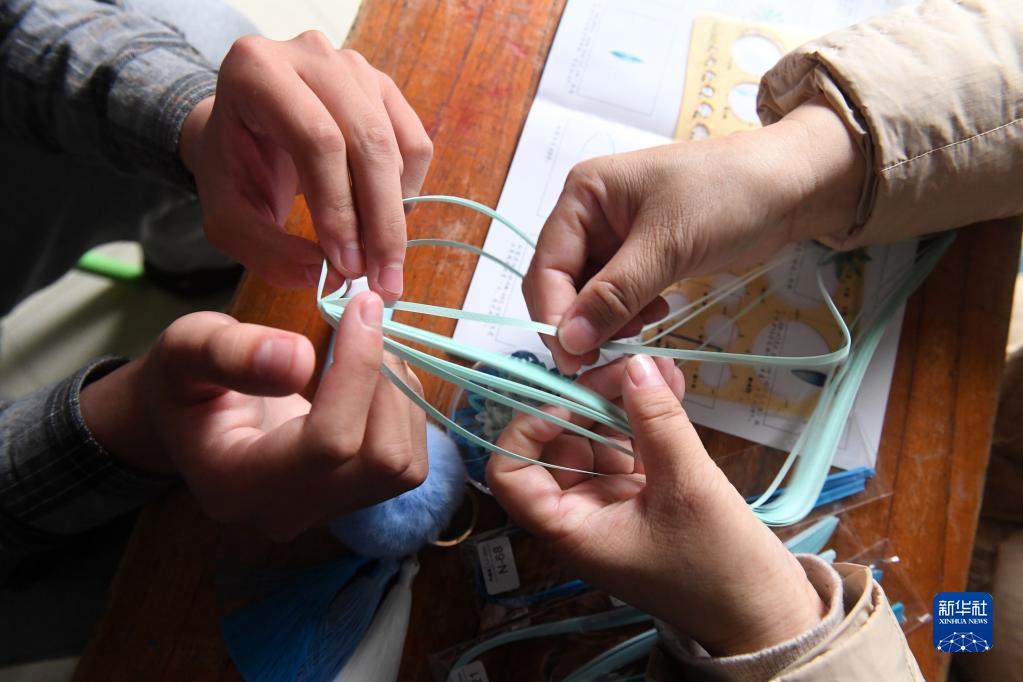 在位于廣西南寧市北湖北路的出租房里,何冬艷和兒子陽陽在做手工(3月31日攝)。