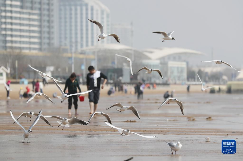 4月2日,游客在秦皇島市海港區(qū)金夢海灣游覽。