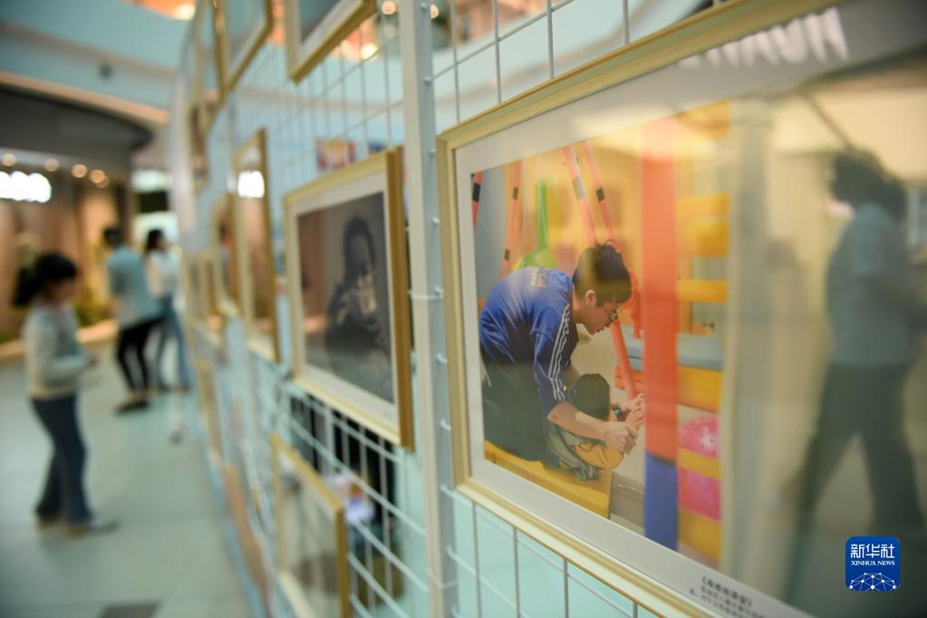 4月2日,市民在世界孤獨癥日主題慈善活動現場觀看孤獨癥兒童主題攝影展。