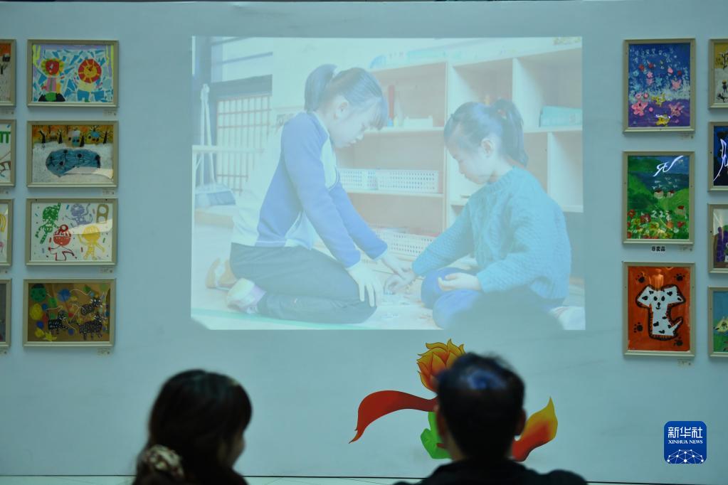 4月2日,市民在世界孤獨癥日主題慈善活動現場觀看孤獨癥兒童關愛宣傳片。