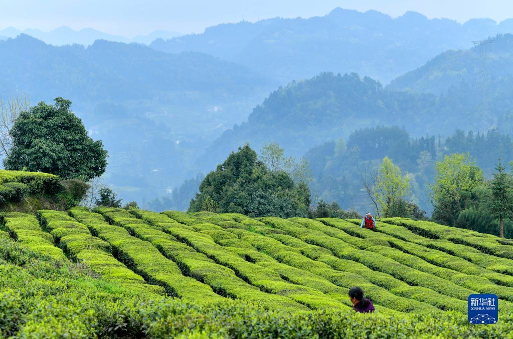 4月2日,茶農在湖北省宣恩縣萬寨鄉的茶園里采摘茶葉。