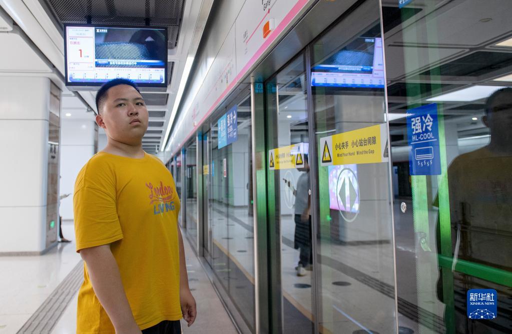 3月30日,黃志能在深圳地鐵崗廈站等待地鐵到來。