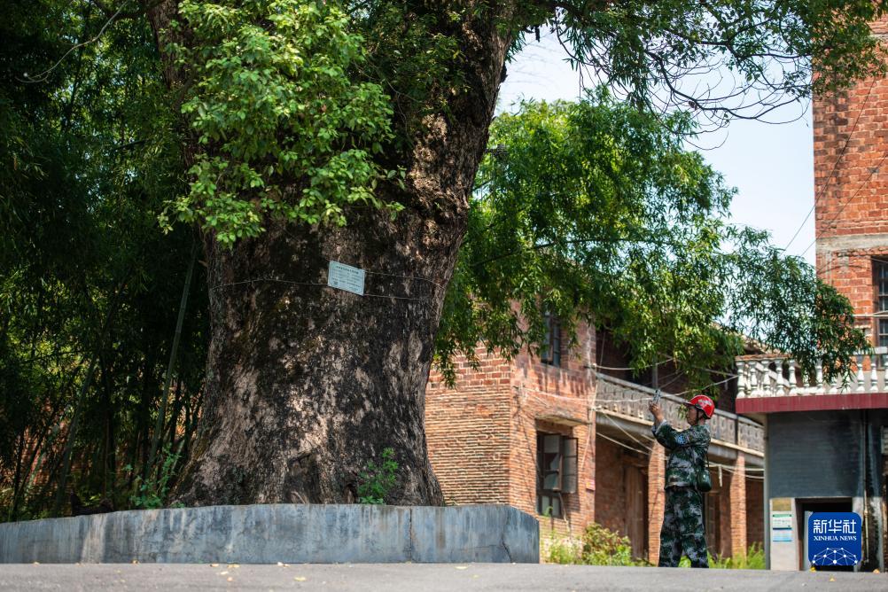 8月24日,在瀏陽市金剛鎮丹桂村,黃蔚谷記錄古樹生長情況。