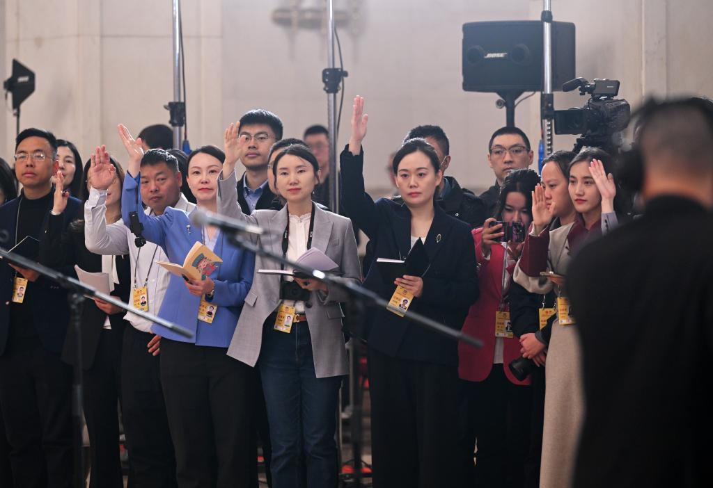 3月10日,全国政协十四届三次会议第三场“委员通道”集体采访活动在北京人民大会堂举行。