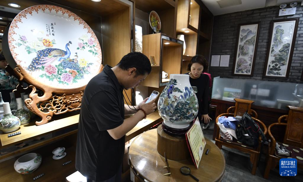 京彩瓷博物馆展示的京彩瓷展品(6月18日摄)。