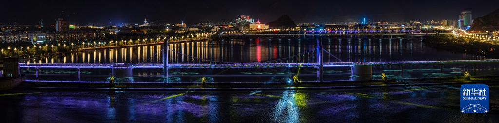 这是7月30日拍摄的拉萨河夜景,由近及远分别是和美桥、柳梧大桥和连心桥(无人机拼接照片)。