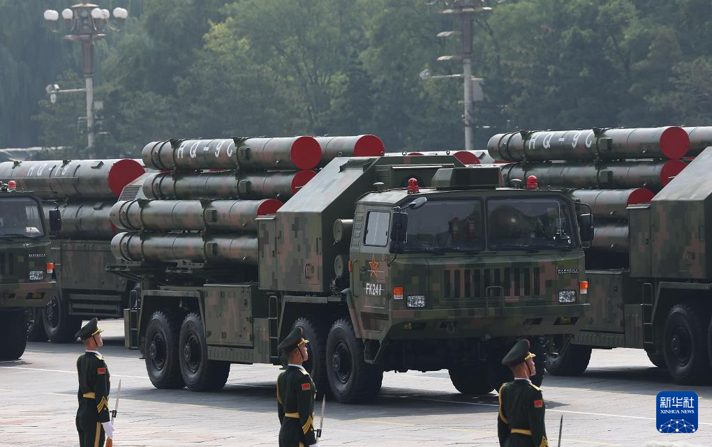 9月3日,纪念中国人民抗日战争暨世界反法西斯战争胜利80周年大会在北京隆重举行。这是舰载防空武器方队接受检阅。