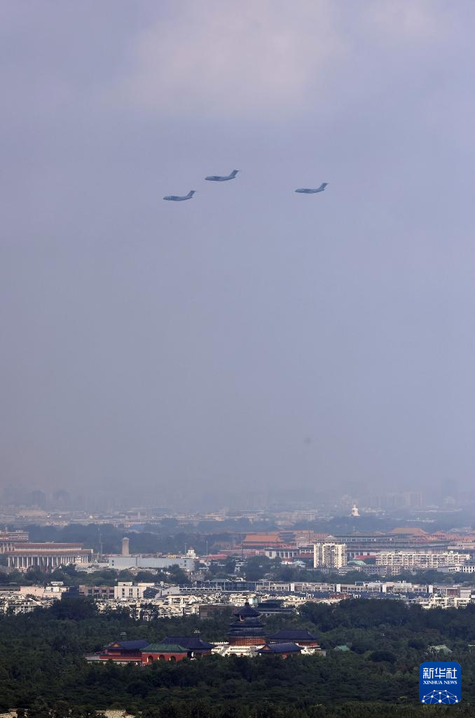 9月3日,纪念中国人民抗日战争暨世界反法西斯战争胜利80周年大会在北京隆重举行。这是运输机梯队接受检阅。